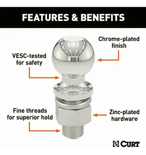 Para una conexión segura y sin preocupaciones, la Bola de Remolque CURT 40002 es la elección ideal. Diseñada por CURT, líder reconocido en accesorios de remolque, esta bola combina una ingeniería de precisión con materiales de alta calidad para ofrecer un rendimiento excepcional y una durabilidad prolongada en todas tus aventuras.